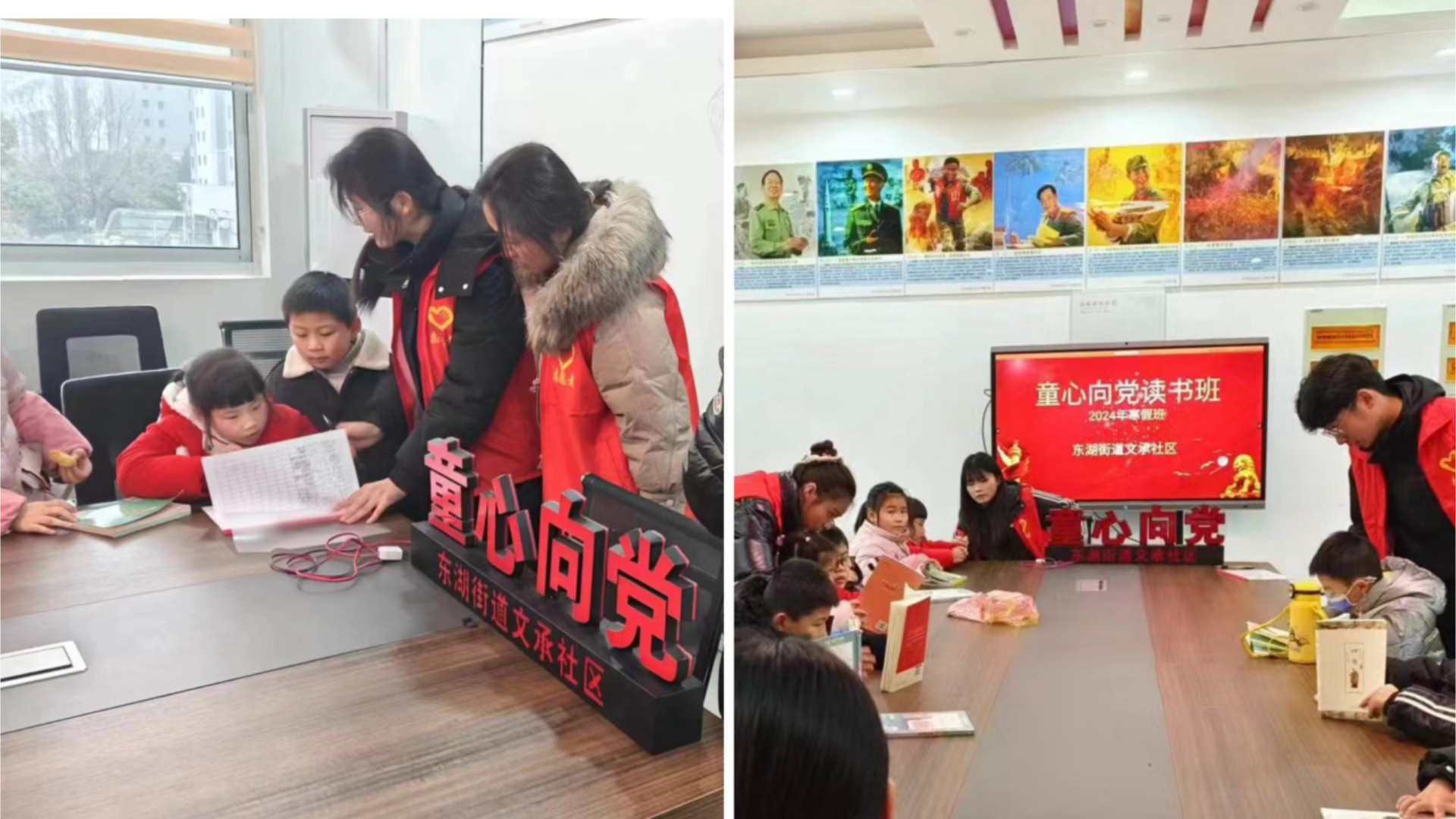 娄新杨同学来到徐州市邳州县文承社区,做起“童心向党读书班”小老师。通过引导和宣传,让小朋友们了解中国共产党的历史光辉历程,帮助他们坚定文化自信,厚植爱国主义情怀,培养好思想、好品行、好习惯。