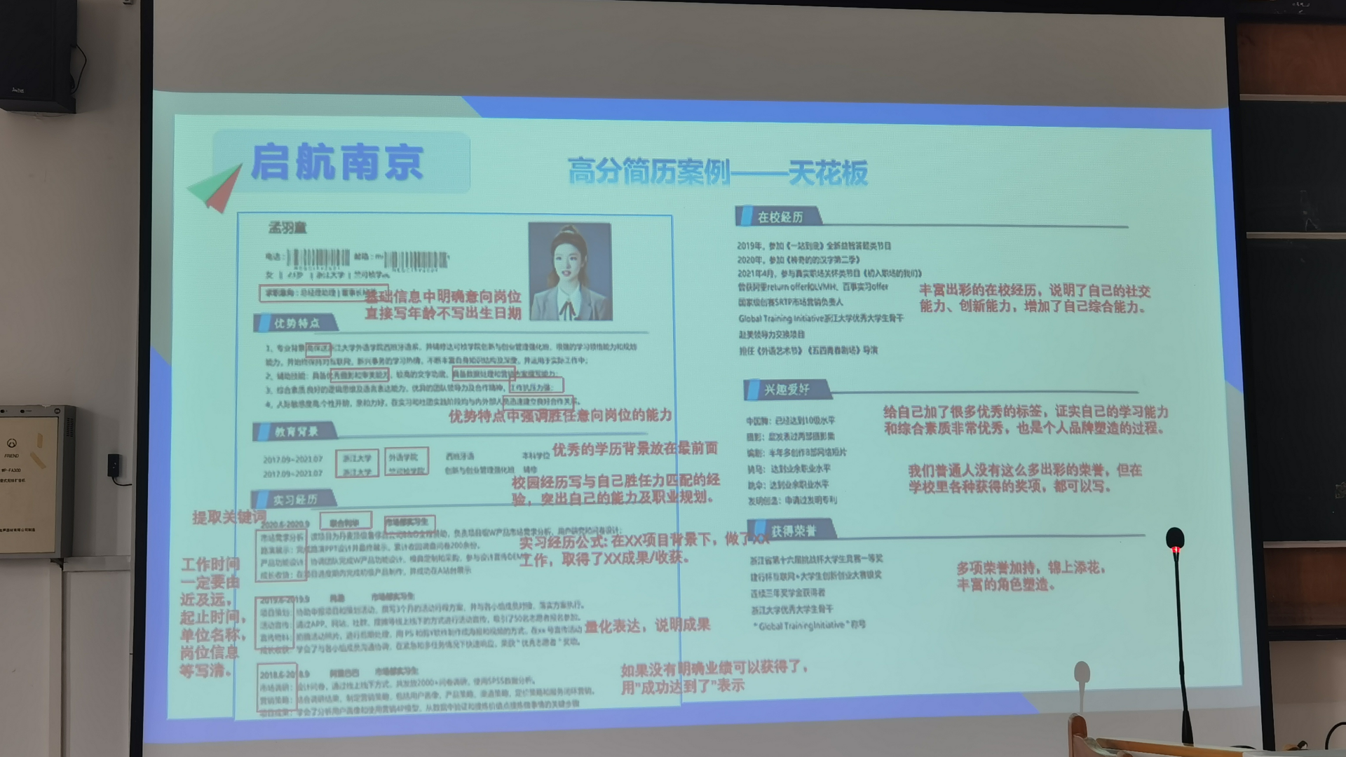 通过此次活动,同学们学习到了如何在制作简历的过程中突出个人核心竞争力,使同学们在未来面对机遇与挑战时能够更加自信地面对职业机会、展现自我风采,为学院后期开展简历制作大赛打下了良好基础。未来,民用航空系将继续开展“‘职’点迷津 赋能未来”系列就业指导活动,聚焦生涯与职业发展需求,助力学生更好地成长成才。