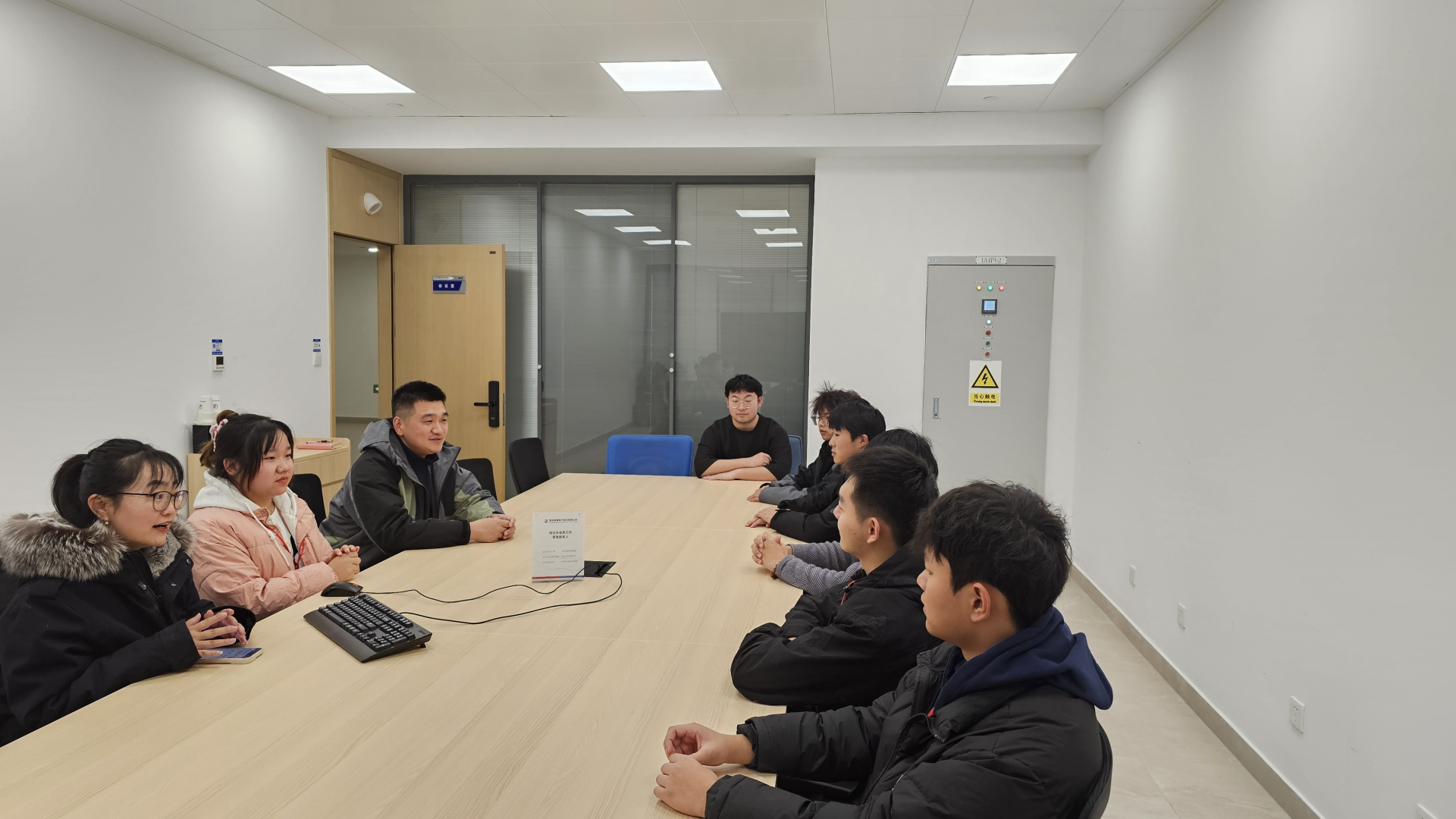 两位老师与实习学生就工作生活情况,岗位适应和困难问题进行亲切交流,鼓励大家扎根本职工作,学习技术技能,能够在企业实习中得到成长。