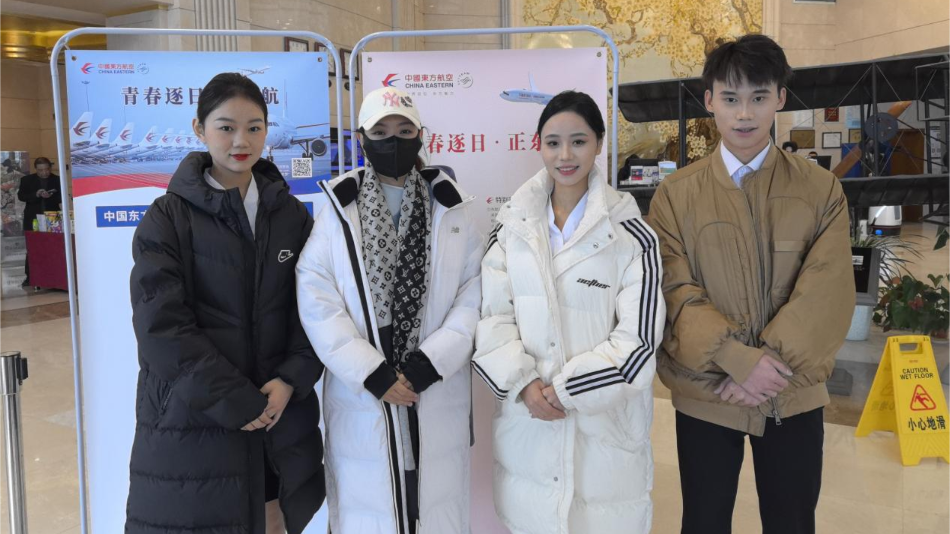 为更好地推动空中乘务专业学生在对口岗位的实习就业工作,12月 18 日,民用航空系专业教师朱枫和施文静带领 22 级空中乘务专业学生前往东方航空江苏有限公司参加空中乘务员招聘面试。