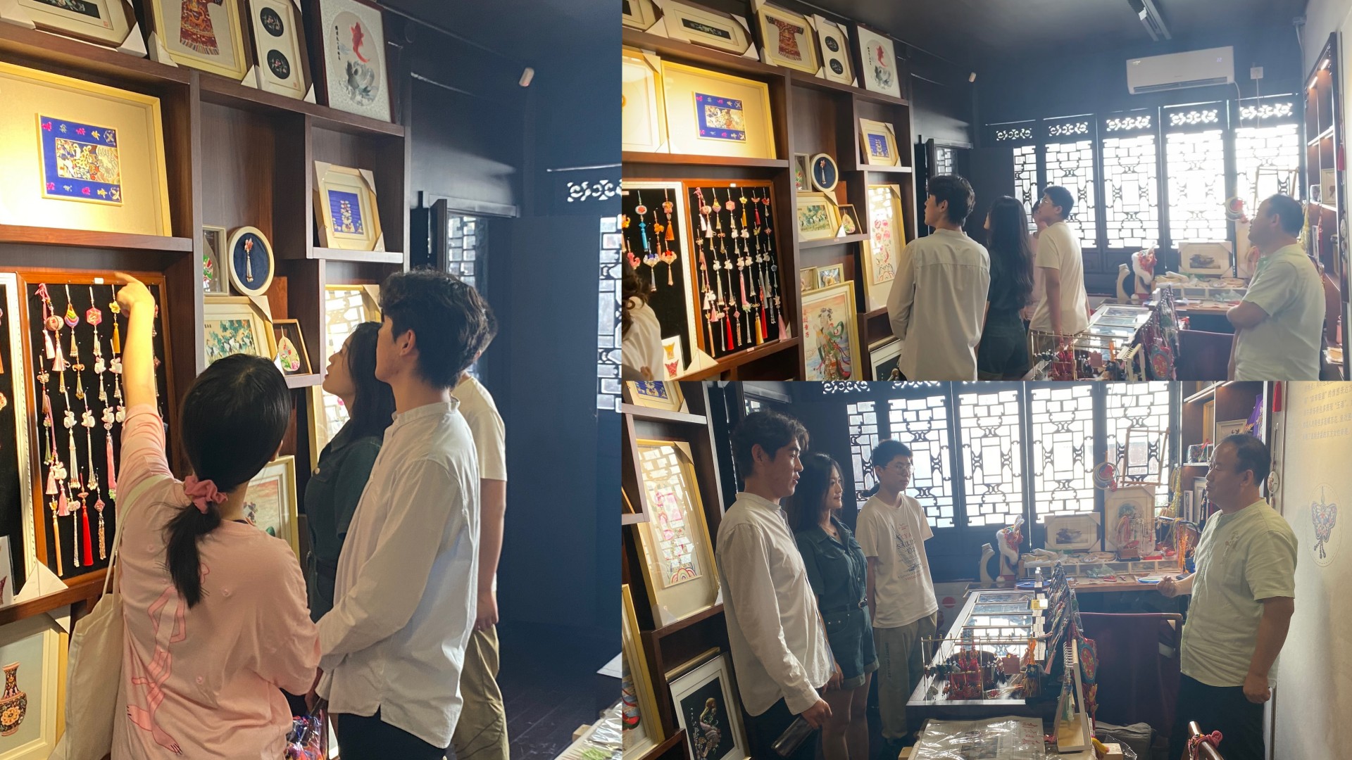 南京剪纸是中国剪纸的著名产地之一,在南京民俗博物馆,队员们探寻剪纸坊,步入剪纸展厅,一幅幅精美绝伦的剪纸作品呈现在眼前。繁复的纹路,逼真的图案,无一不彰显剪纸艺人高超的技艺,不禁感叹传统手工艺品的精致。