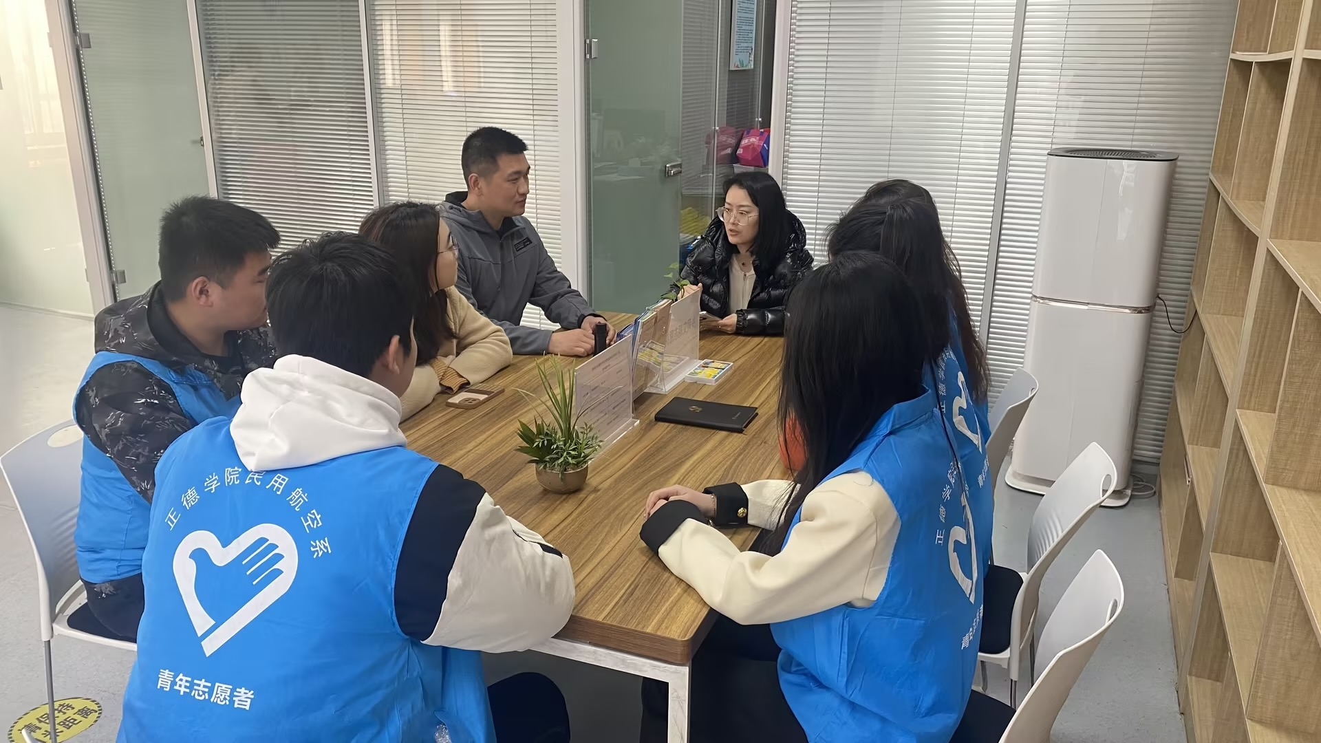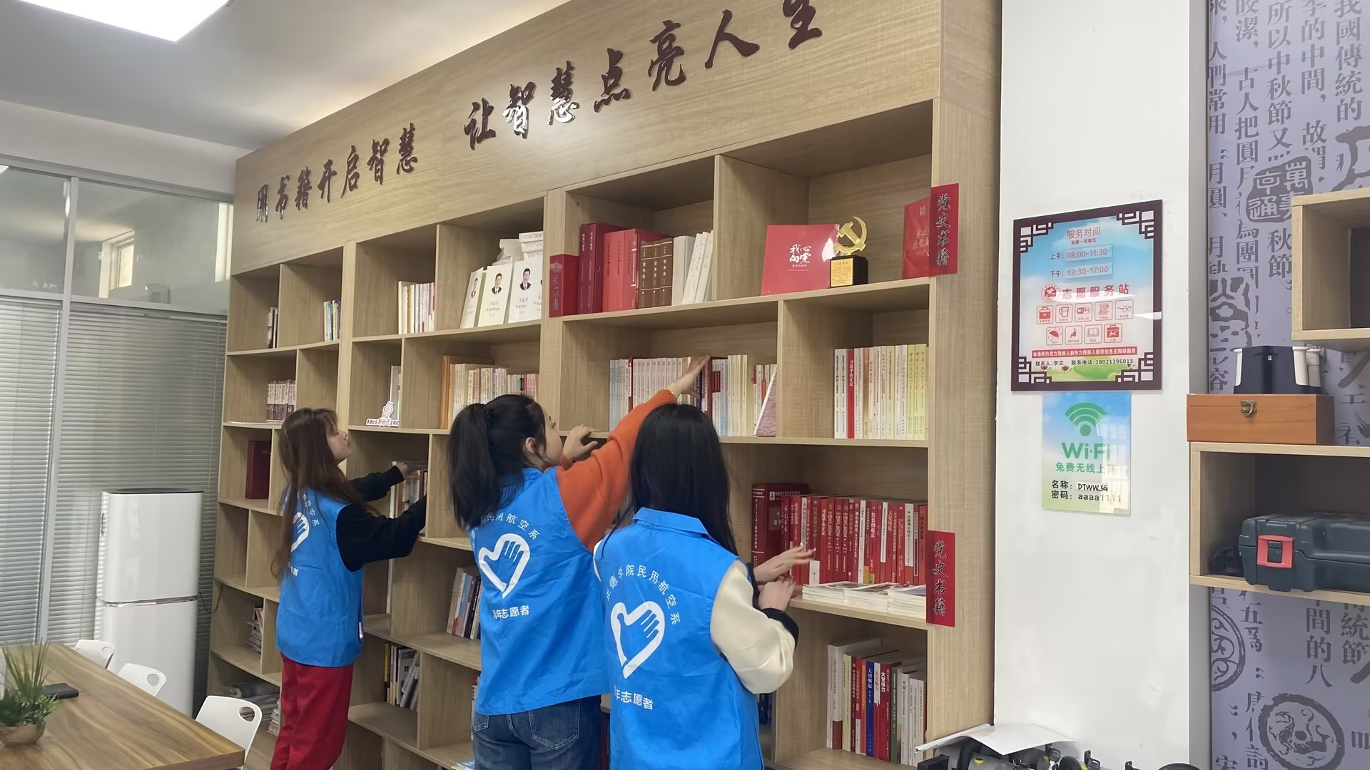 会后学生志愿者们参观了社区服务站点,并帮助社区整理了阅读墙。后续民用航空系志愿服务团队将从防电诈宣传、社区管理、垃圾分类指导、暑期社会实践等方面参与社会志愿服务活动。