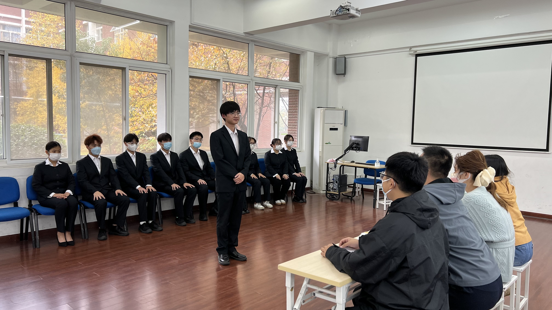 本次活动分为自我介绍、评委提问两个环节。在第一环节中,同学们从个人情况、实践经历、个人技能、自我评价等方面进行展示。在评委提问环节中,同学们能够沉着应对,回答问题时条理清晰,较好的展示了自身临场应变能力和思维能力。