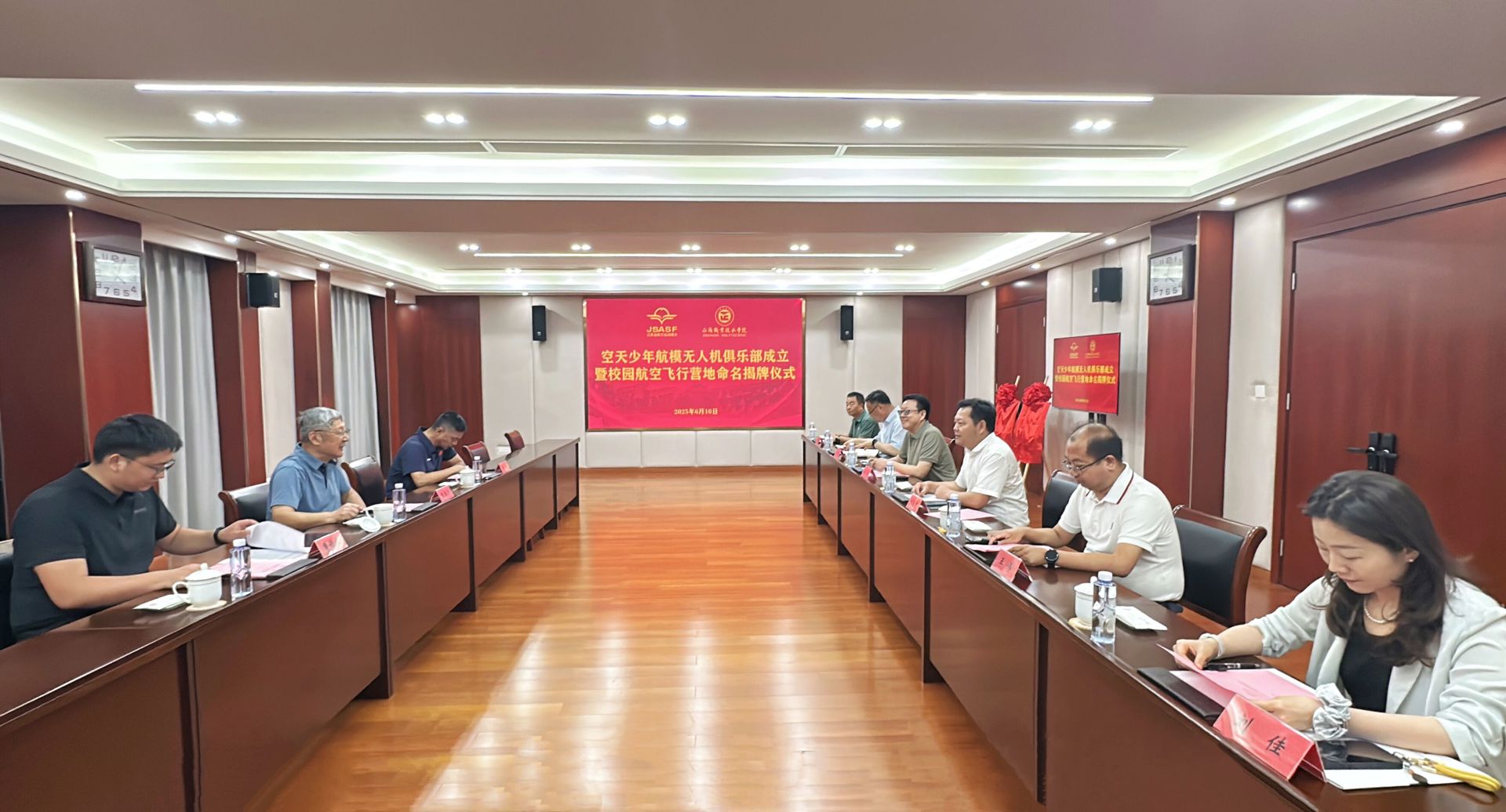 随后,王剑与赵凯雷共同为俱乐部和飞行营地揭牌。揭牌仪式结束后,与会领导、老师围绕专业群建设、考证培训、俱乐部和飞行营地工作规划等进行了座谈交流。