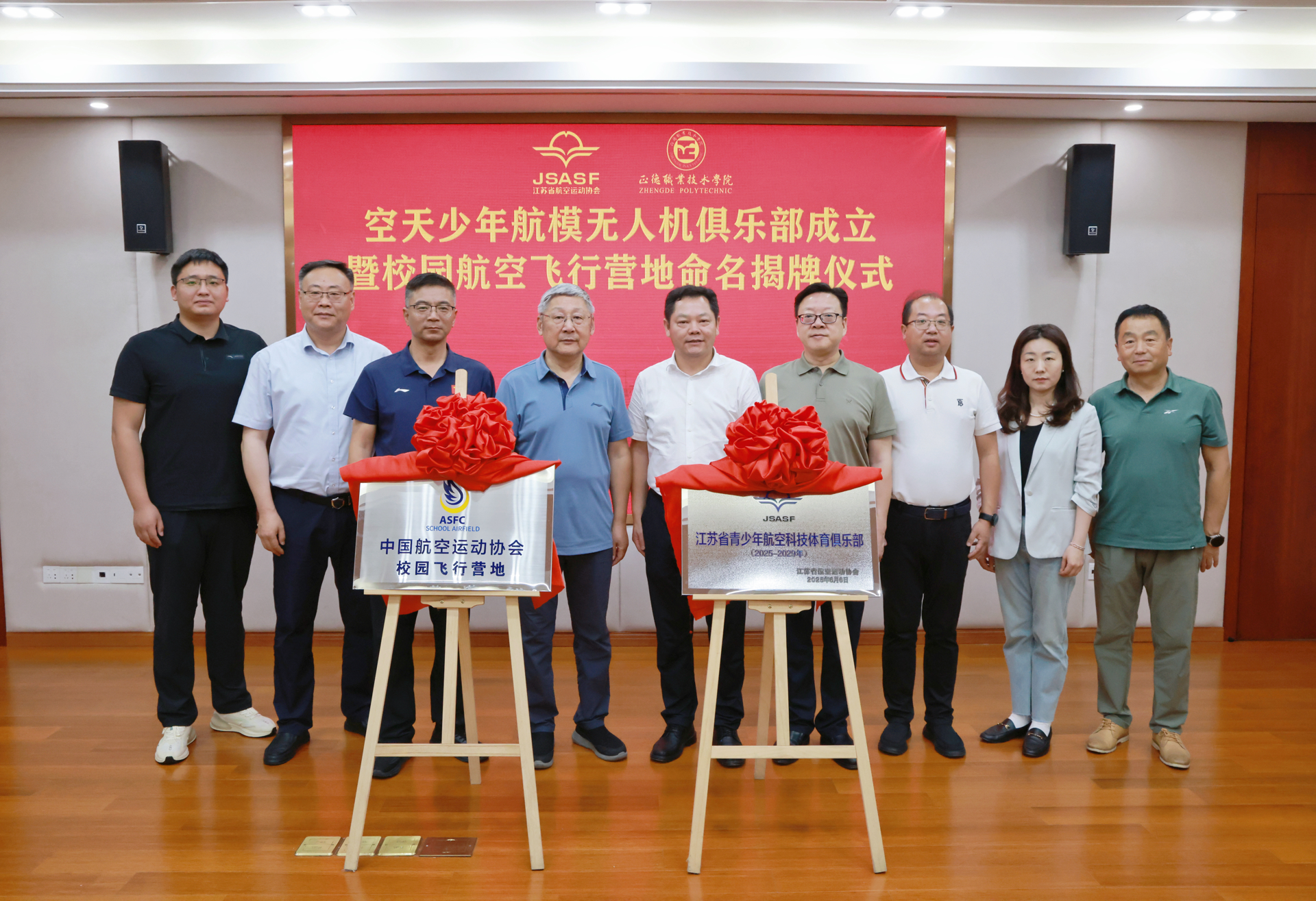 曹佳诚代表江苏省航空运动协会宣读了《关于授予空天少年航模无人机俱乐部为“江苏省青少年航空科技体育俱乐部”的批复》《关于授予成人韩漫 “校园航空飞行营地”称号的决定》。