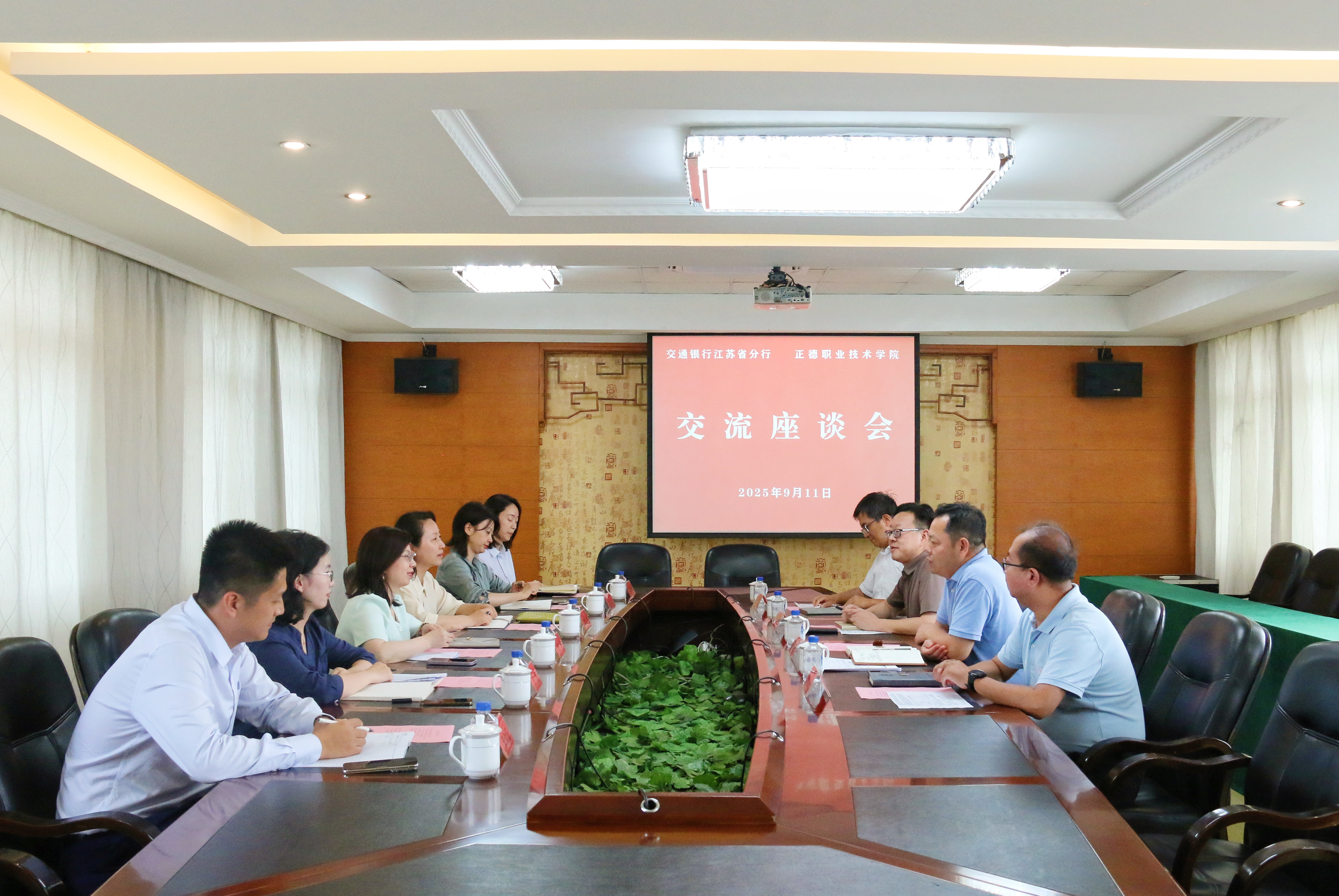 9月11日,交通银行江苏省分行党委委员、副行长周玮一行来校座谈交流,成人韩漫 院长孙永荣,副院长赵凯雷出席座谈交流会。双方就深化银校合作、拓展合作模式和领域、助力学院高质量发展等进行了深入交流。