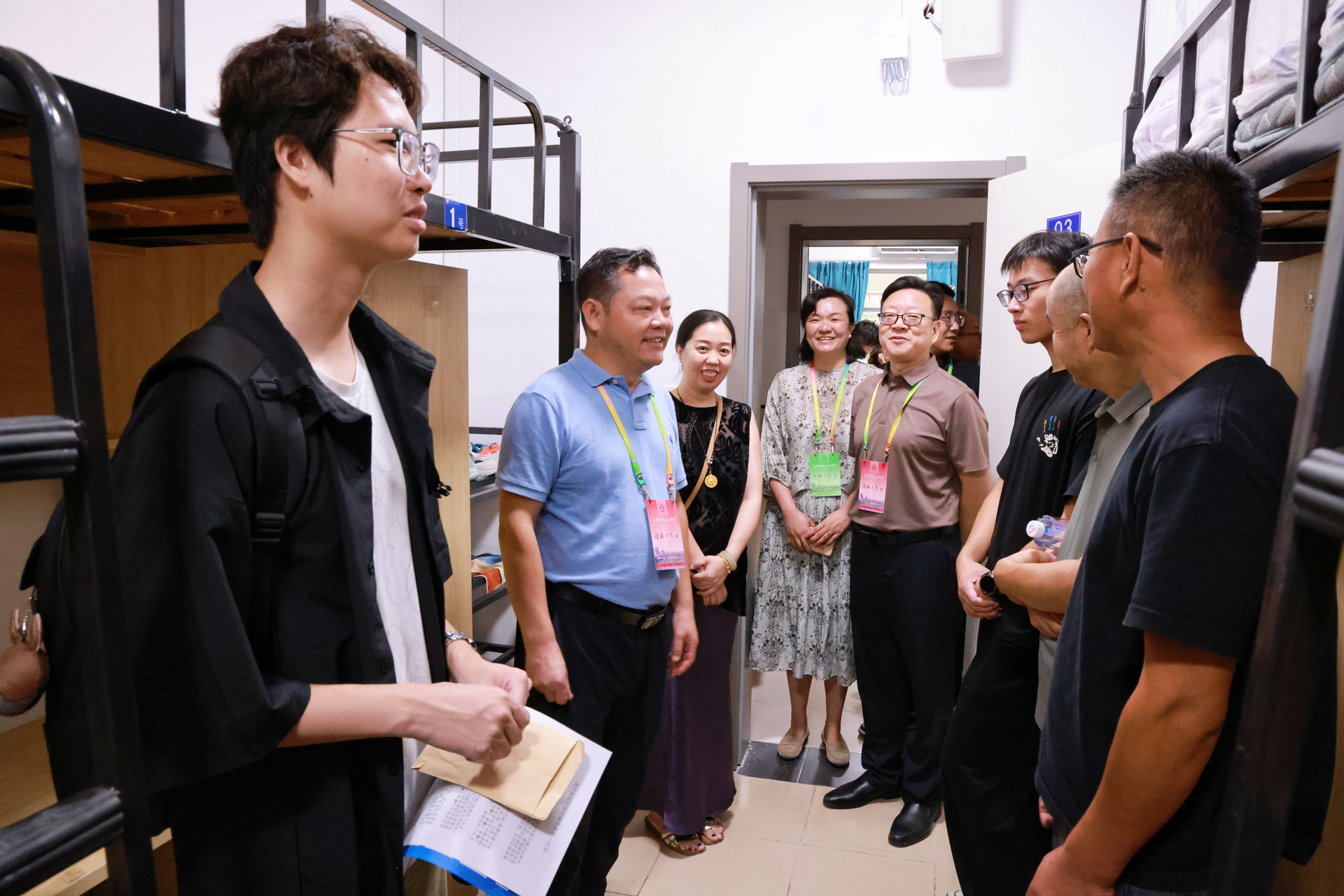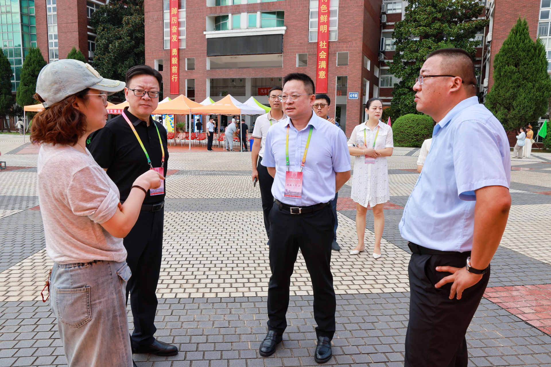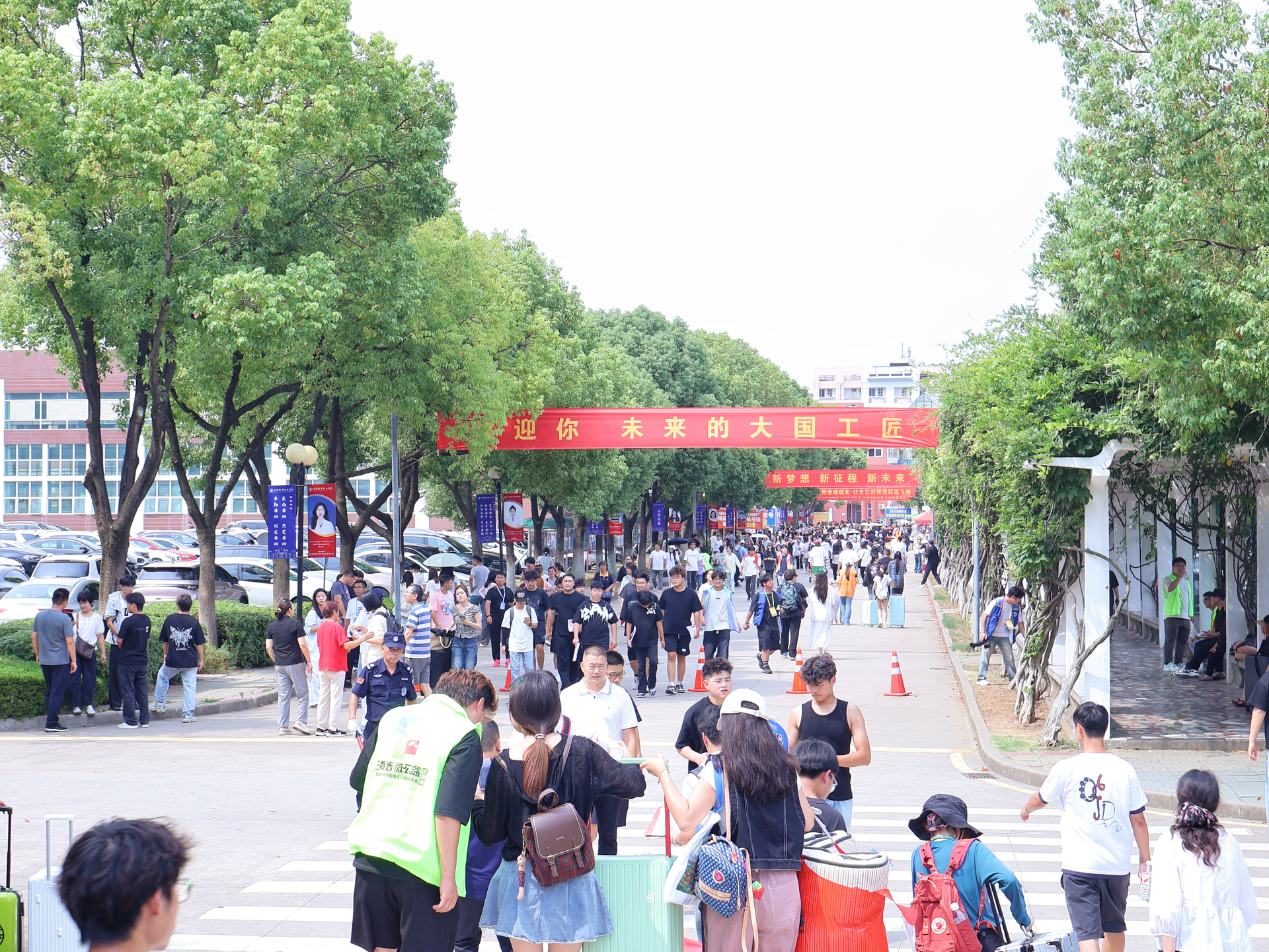 9月12日上午,学院领导班子早早来到迎新现场,先后走访迎新报到点、学生食堂、学生公寓等重点区域。每到一处,院领导都仔细查看场地布置、流程安排,与工作人员深入交流,详细了解各系部特色迎新举措。校园内,迎风招展的道旗、错落有致的展板、温馨醒目的指示牌,全方位展示着学院“以人为本”的育人理念、教师队伍的敬业精神、产教融合的卓越成果,也传递着对莘莘学子的殷切期盼。