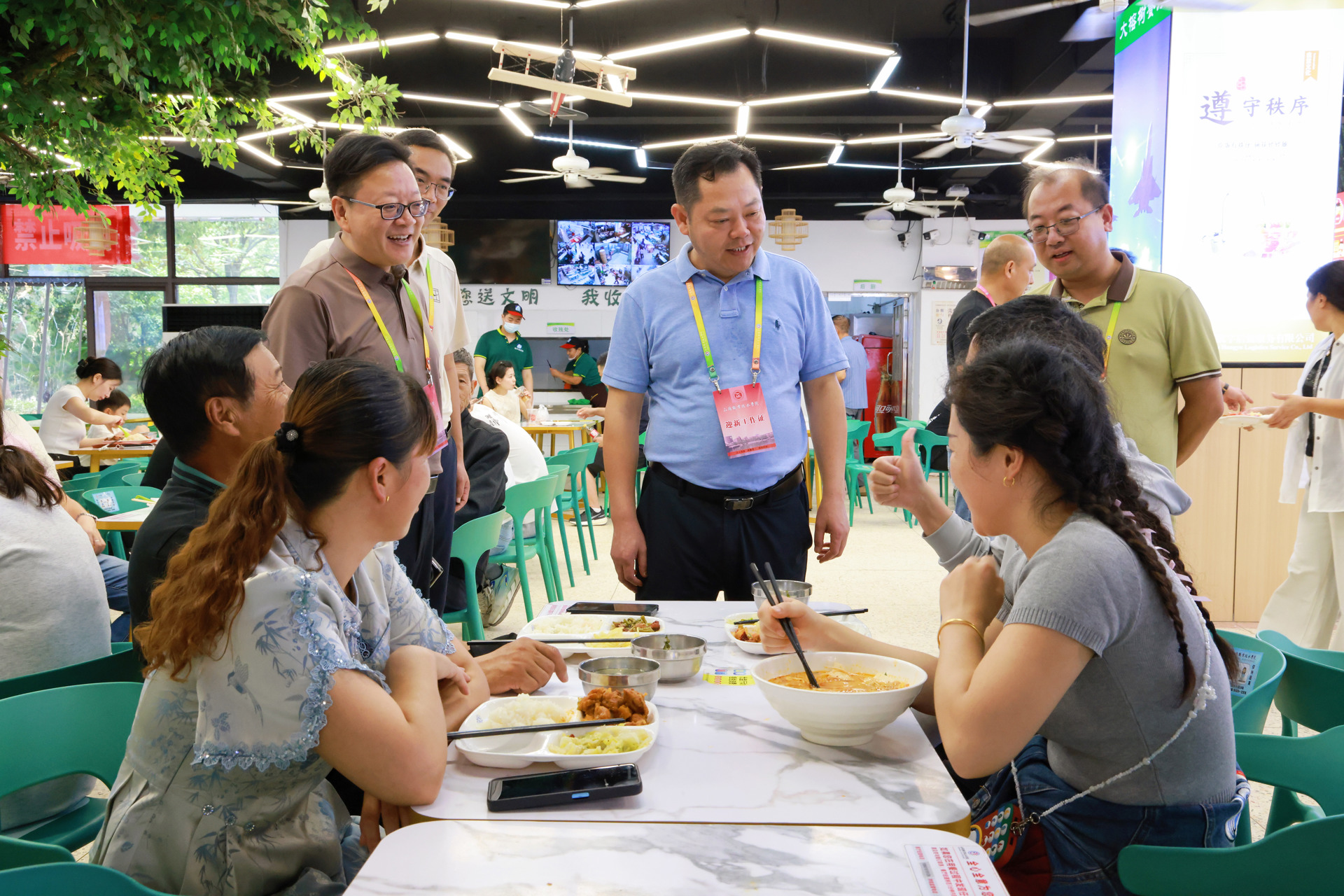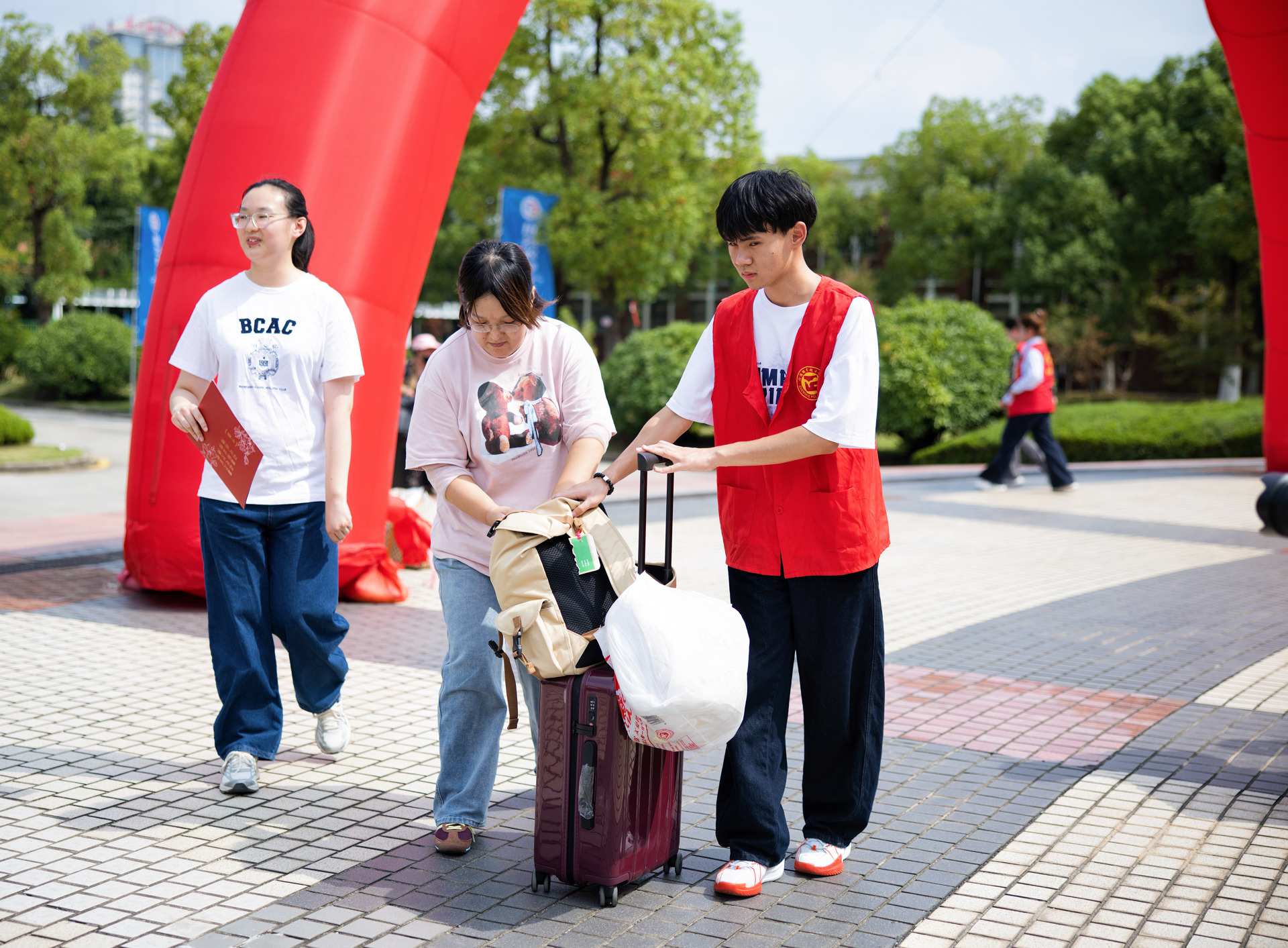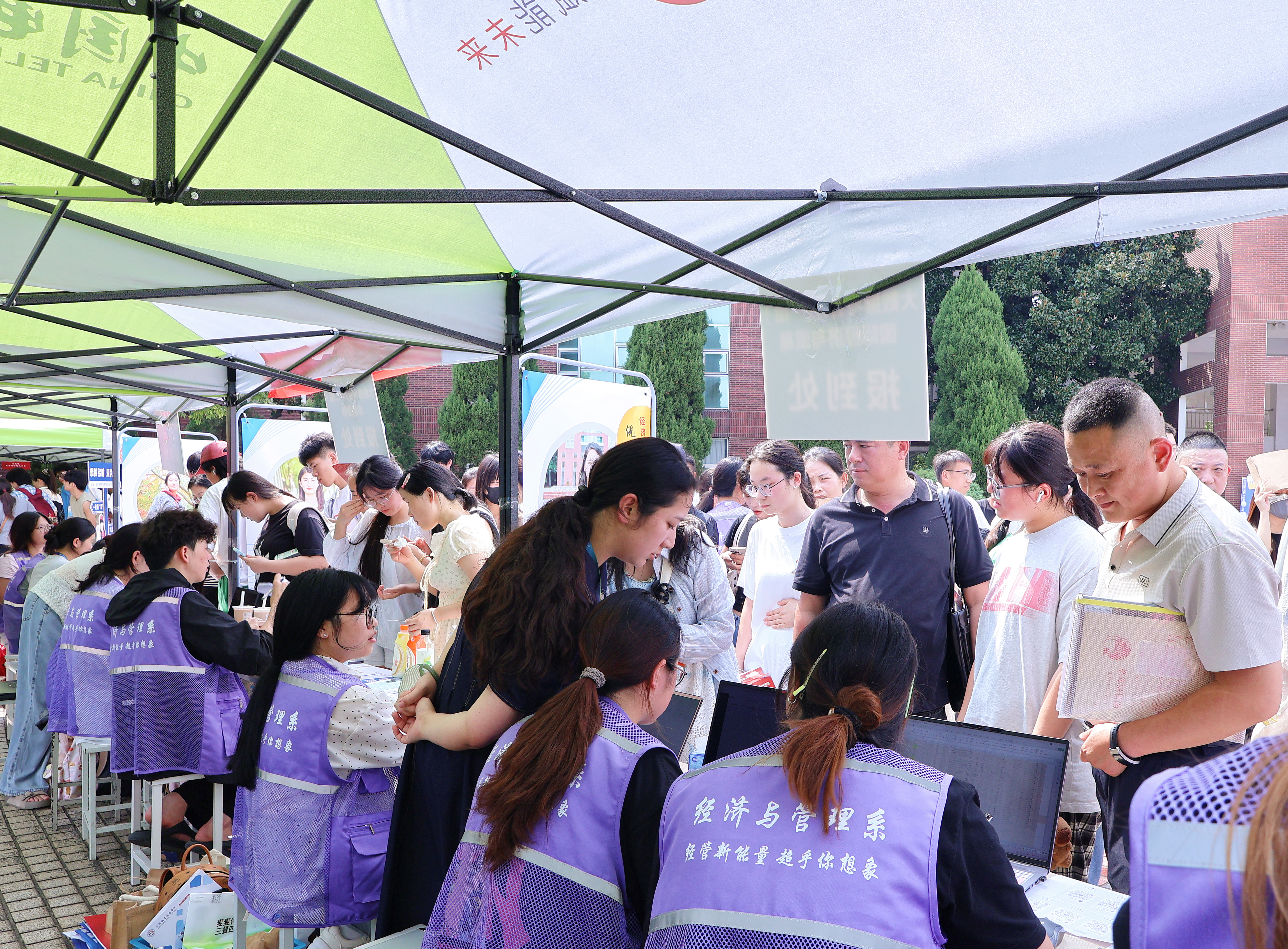 9月12日上午,学院领导班子早早来到迎新现场,先后走访迎新报到点、学生食堂、学生公寓等重点区域。每到一处,院领导都仔细查看场地布置、流程安排,与工作人员深入交流,详细了解各系部特色迎新举措。校园内,迎风招展的道旗、错落有致的展板、温馨醒目的指示牌,全方位展示着学院“以人为本”的育人理念、教师队伍的敬业精神、产教融合的卓越成果,也传递着对莘莘学子的殷切期盼。