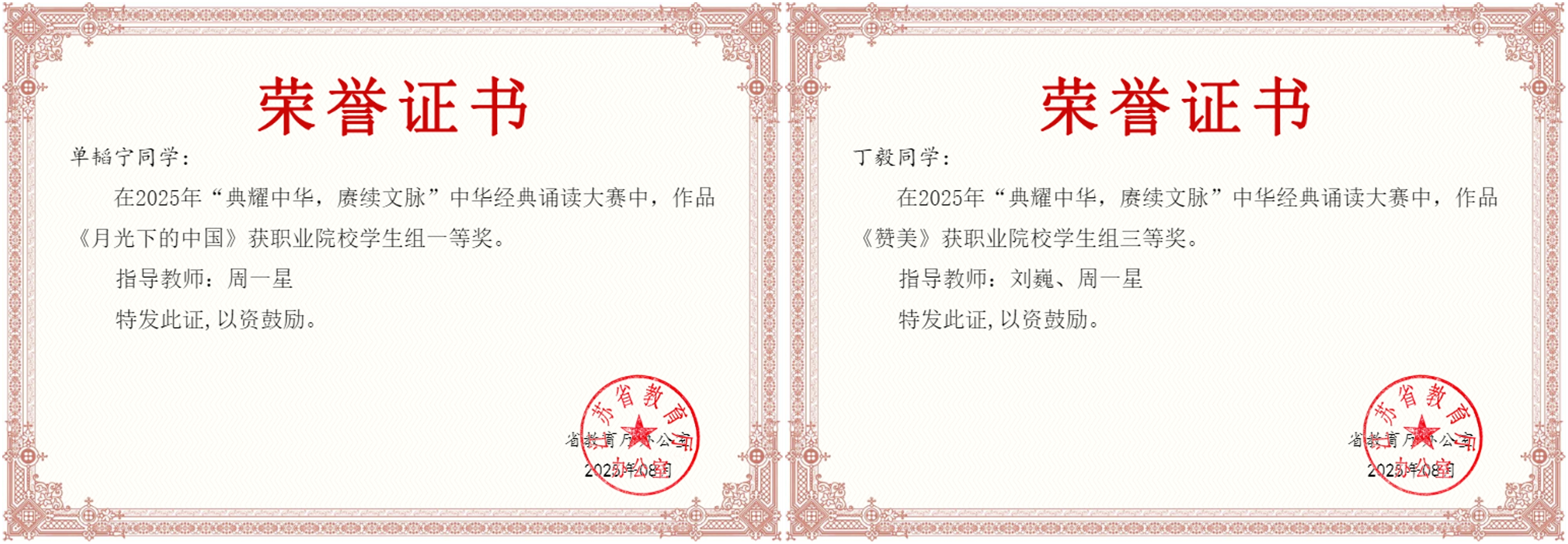 根据《教育部办公厅关于举办第七届中华经典诵写讲大赛的通知》部署,本次大赛系由江苏省教育厅组织开展的2025年度中华经典诵写讲系列活动的重要组成部分。学院对该项赛事高度重视,今年3月,院语委办、公共教学部联合举办了第八届中华经典诗文朗诵比赛暨省赛校内选拔赛,最终遴选出10名学生代表学院参加省级竞赛,并在备赛师资、场地保障及资金投入等方面提供了有力支持。