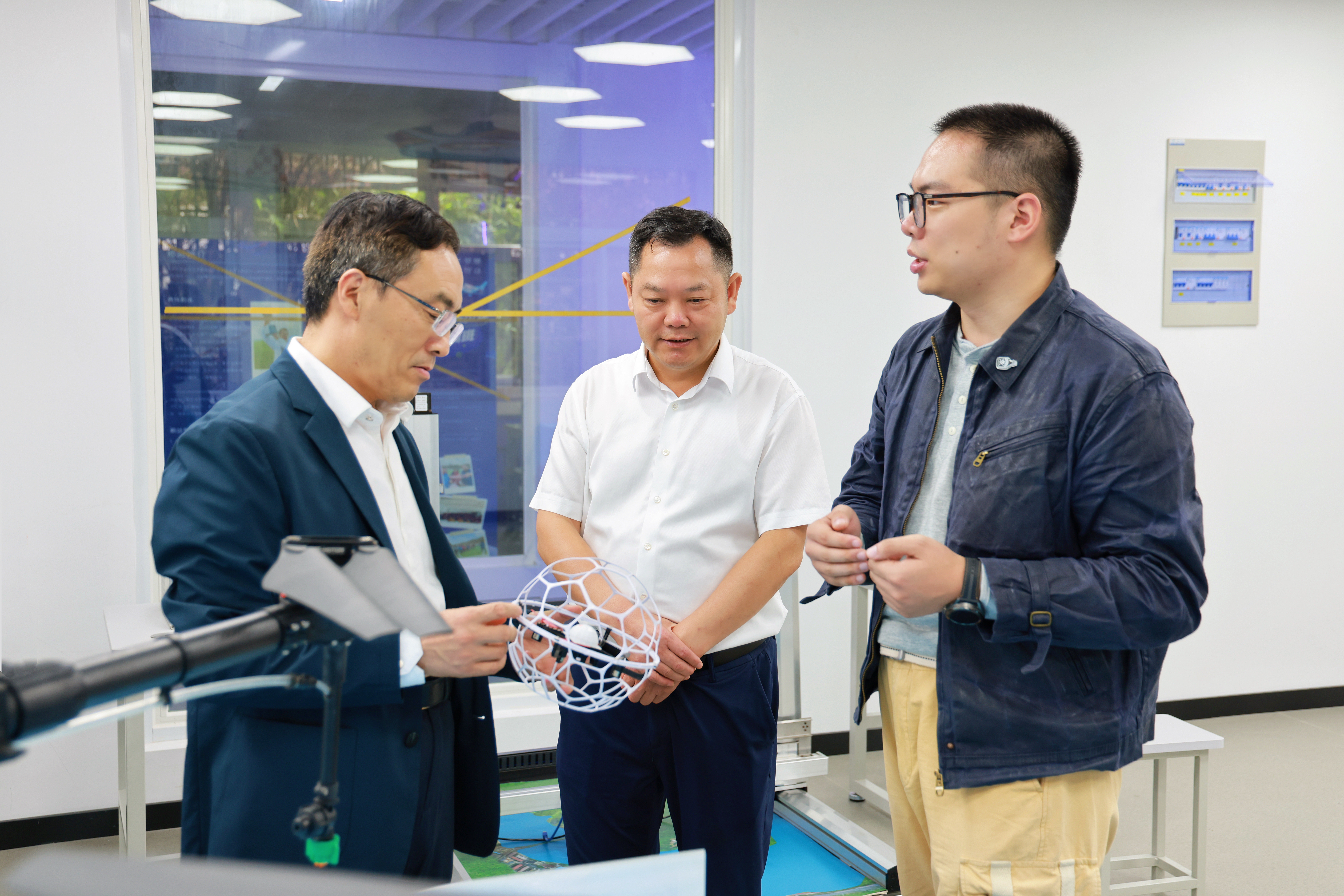 会前,在院领导陪同下,崔海涛理事长实地考察了学院大国工匠工作室、“正德—大华”无人机综合实训中心、科沃斯检测实训中心等教学实践场所,详细了解学院实训教学开展情况与产教融合成果。