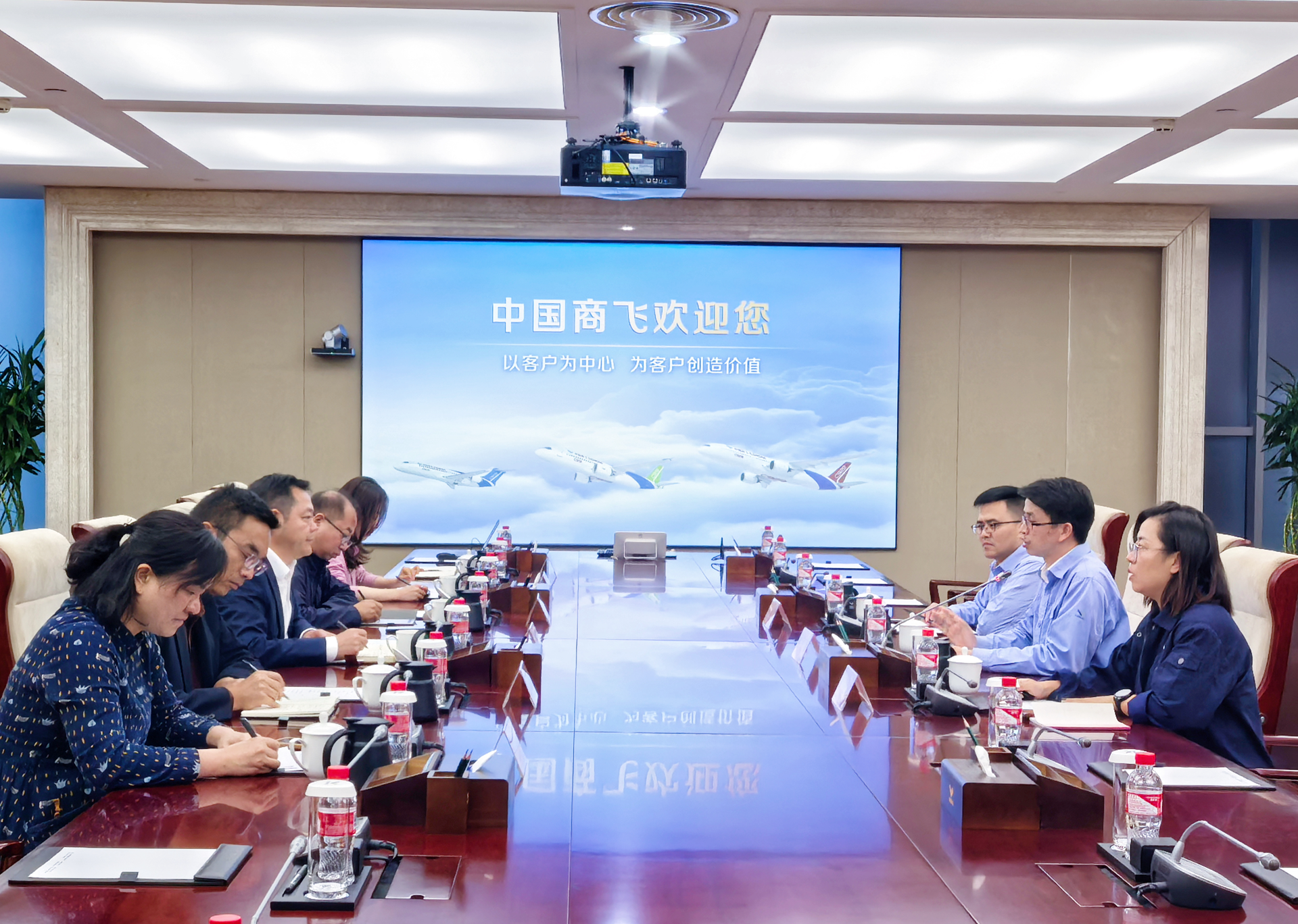 会前,孙永荣一行在吕彬等陪同下实地参观了数控智能工厂、C909和C919总装车间,详细了解了先进的车间现场智能化管理与控制,近距离感受了大飞机制造流程的高效与精密,深刻感受到了中国大飞机事业的澎湃发展。