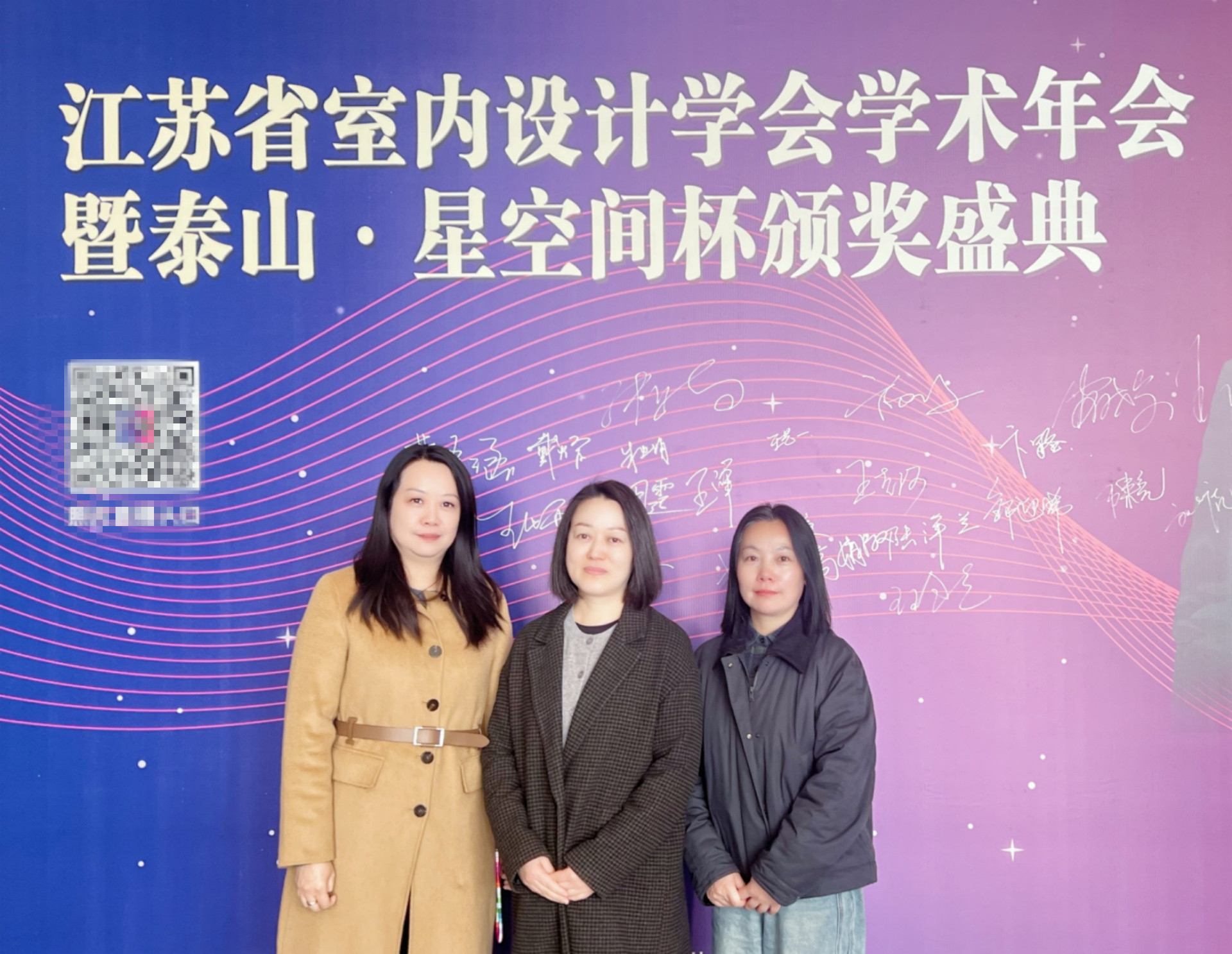 3月21日,江苏省室内设计学会第16届“泰山·星空间杯”室内设计大奖赛颁奖典礼在南京隆重举行。本届大赛以生态与环保、节能与健康、城市更新、文化与传承、技术与创新为设计主题,由江苏省科学技术协会指导、江苏省室内设计学会主办,是入选江苏省高等教育学会《2025年全省普通高校本专科生学科竞赛省级赛事目录》的重要赛项。成人韩漫 艺术设计与建筑工程系教师冯显静、周倩、刘丽三位教师应邀出席典礼,共同见证了这一行业盛事。