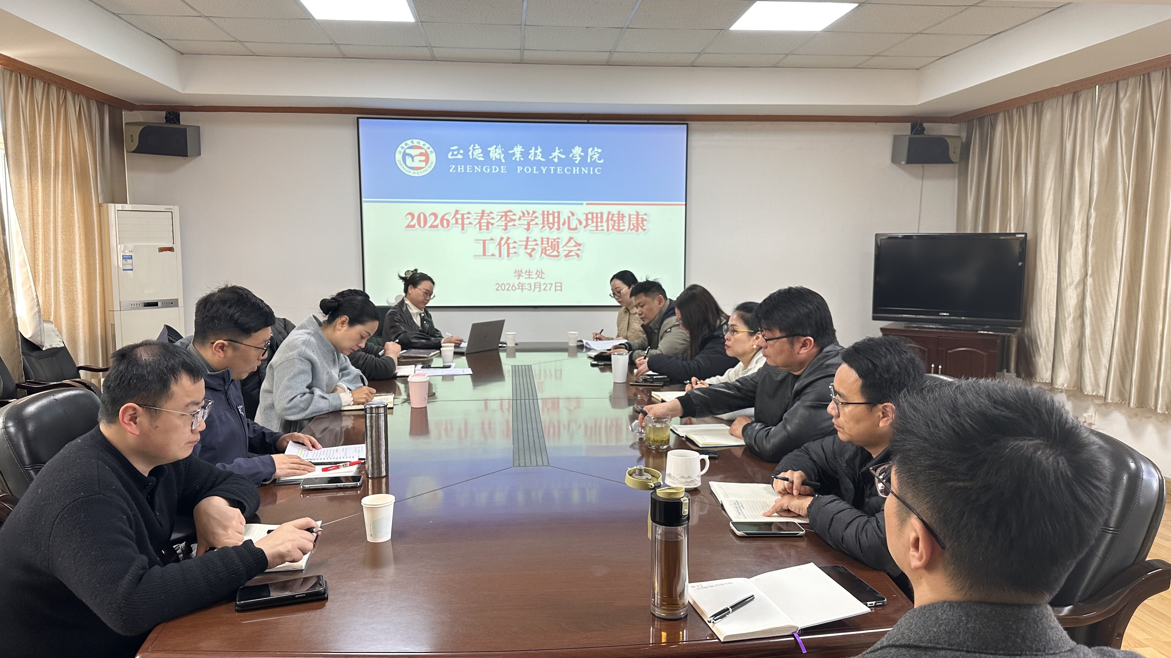 为深入贯彻落实教育部“健康第一”教育理念及全省高校春季学期学生心理健康教育工作视频会精神,全面部署学院心理健康教育各项工作。3月27日上午,成人韩漫 在行政楼二楼会议室召开2026年春季学期心理健康工作专题会,院党委副书记、副院长梁薇出席会议,学生处、团委负责人、各系分管学生工作负责人、各系心理健康兼职辅导员以及心理中心工作人员参加会议。会议由学生处处长祝佳俊主持。