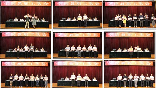 副院长薛忠云、赵湘莲、赵凯雷分别宣读了相关表彰决定,会议表彰了2017-2018学年省级教学竞赛获奖者、2017-2018学年先进单位和优秀教职工、2017年就业工作先进集体和先进个人、2018年院级教学观摩和教学竞赛获奖教师、2018年招生工作先进集体和先进个人。