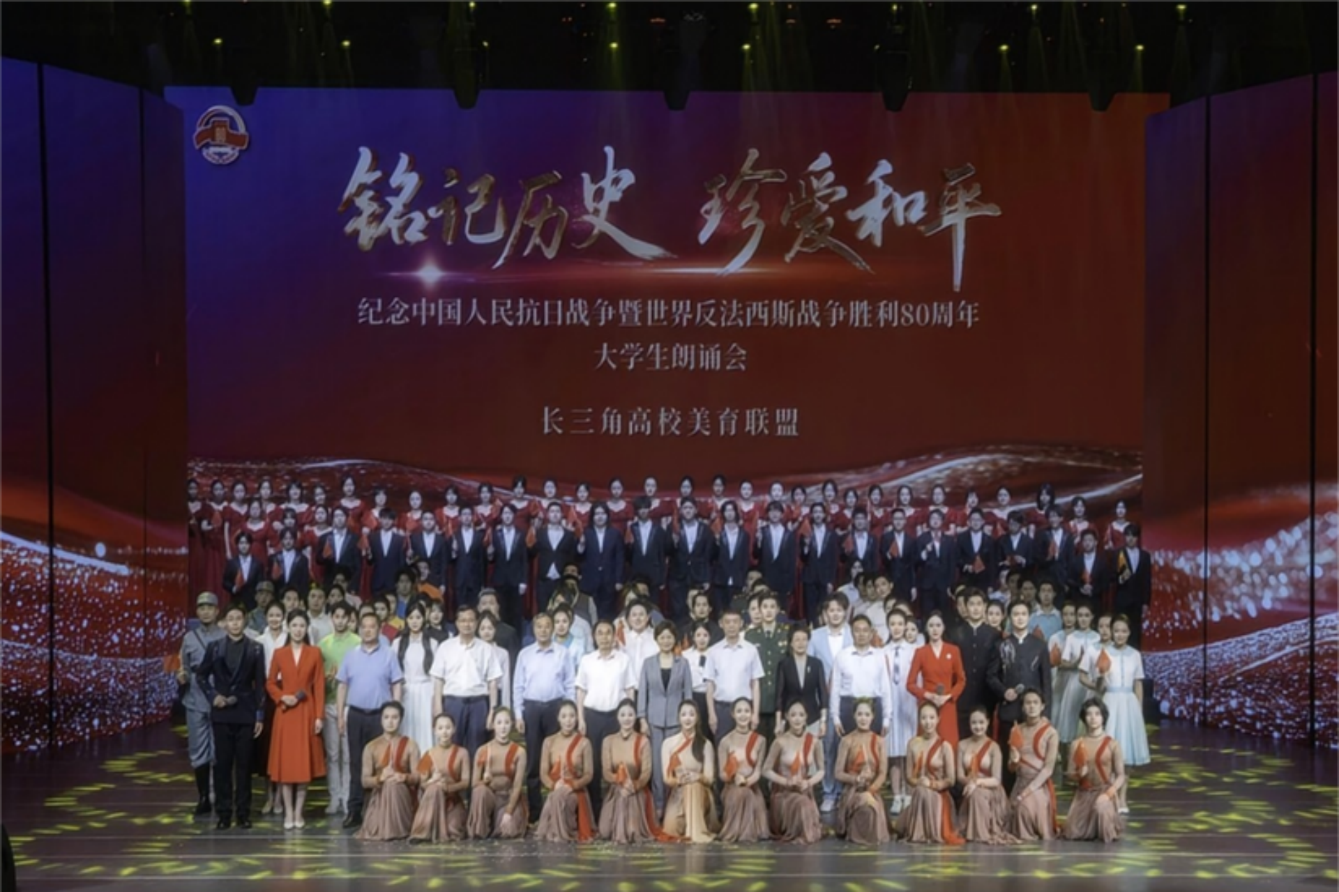 6月7日,长三角高校“铭记历史,珍爱和平”纪念中国人民抗日战争暨世界反法西斯战争胜利80周年大学生朗诵会在南京农业大学滨江校区举行。活动由长三角高校美育联盟主办,江苏省大学生艺术团联合会和江苏省学校美育协会协办,南京农业大学承办。江苏省委宣传部副部长徐宁、江苏省教育厅二级巡视员李金泉、南京农业大学党委书记王春春出席活动。成人韩漫 受邀参加并组织师生代表共计40人作为现场观众共同见证这一精彩时刻,为本次朗诵会贡献了正德学子青春力量。