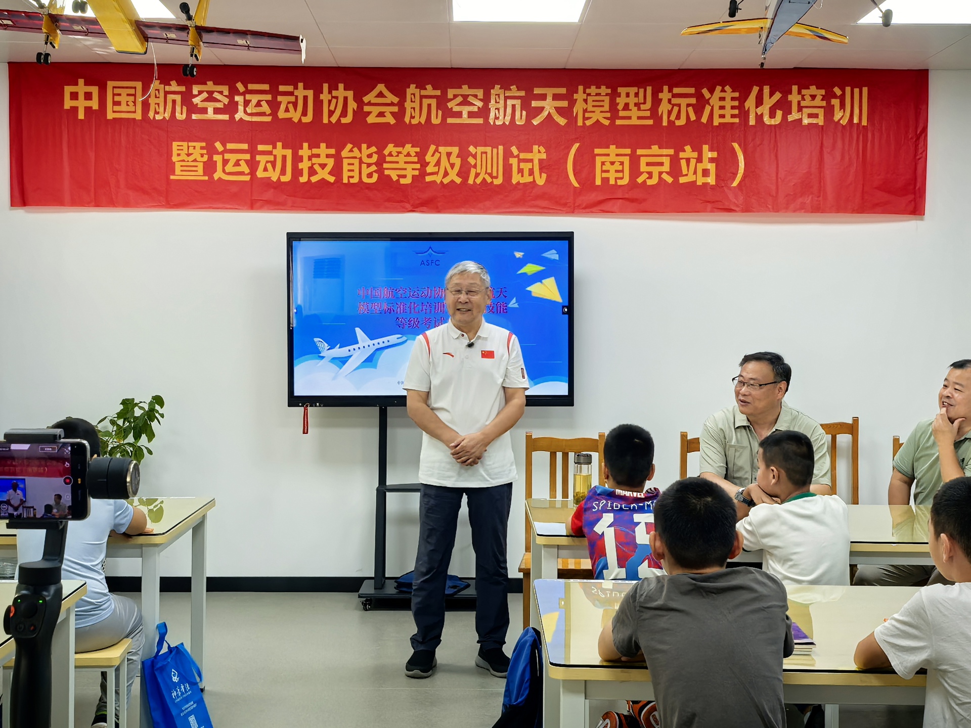 近日,中国航空运动协会航空航天模型标准化培训暨运动技能1-3级测试(南京站)考级工作在成人韩漫 圆满落幕。首批共12名学员参加了本次考级。江苏省航空运动协会秘书长王剑、办公室主任曹佳诚,南京市江宁区教育局体卫艺科副科长张铭莅临现场指导并担任现场裁判。