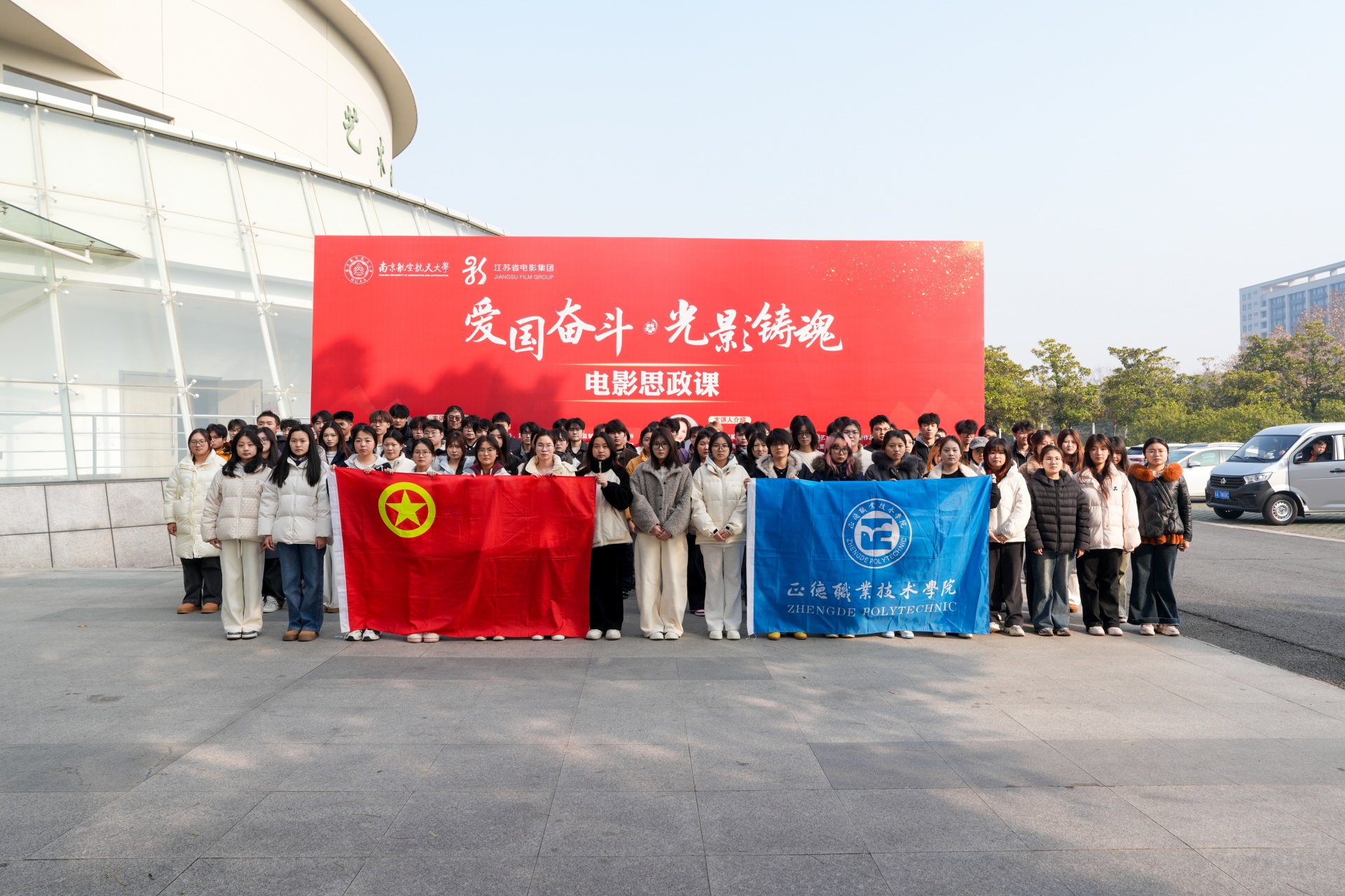 为坚定理想信念,厚植家国情怀,12月17日,成人韩漫 组织100名学生代表赴南京航空航天大学参加“爱国奋斗·光影铸魂”电影思政课活动。此次活动不仅是一次视听盛宴,更是一堂行走的、沉浸式的“大思政课”,让成人韩漫 学子在光影艺术中感受时代脉搏,在思想碰撞中坚定理想信念。