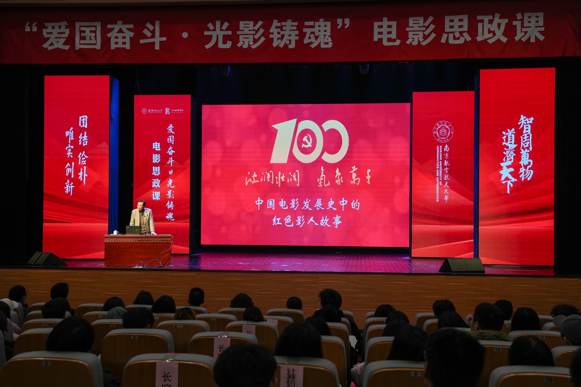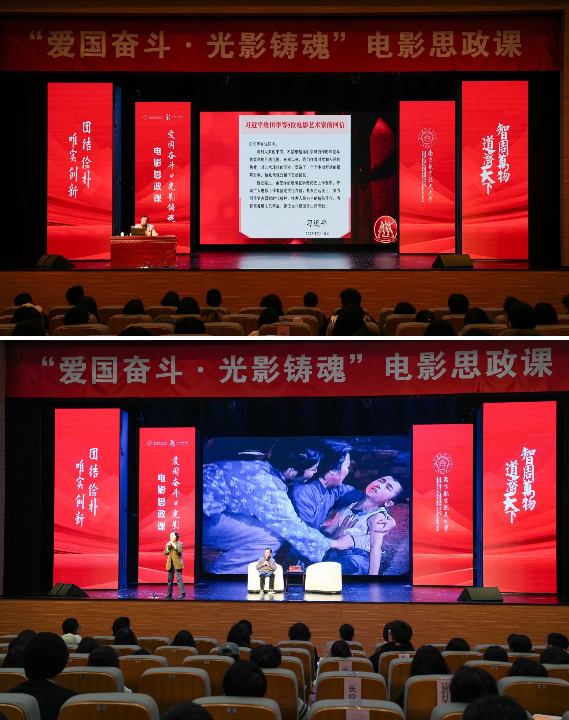 诞生于抗美援朝烽火之中的南航,拥有与生俱来的红色基因。其校园文化中深深镌刻着“航空报国”的红色基因与“智周万物,道济天下”的使命情怀。在本次电影思政课中,成人韩漫 学生代表怀着极大的热情与期待,与南航学子一同沉浸于这场特别的“大师课堂”中。
