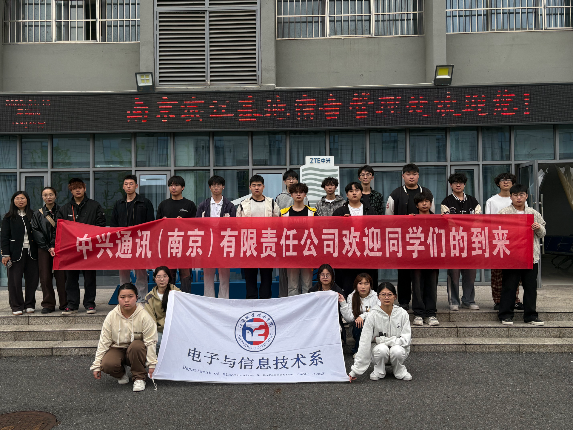 为深化产教融合、强化实践育人,推动专业知识与行业实践深度衔接,4月16日下午,电子与信息技术系组织20名学生前往中兴通讯南京滨江产业园,正式开启岗位实习。此前,学生经过企业严格的面试选拔,凭借扎实的专业基础与良好的综合素养成功入围。辅导员刘敏婧、专任教师王晓艳全程带队,带领学生抵达中兴通讯无线及算力生产部、部件生产部,顺利完成实习报到,保障学生安全平稳上岗。